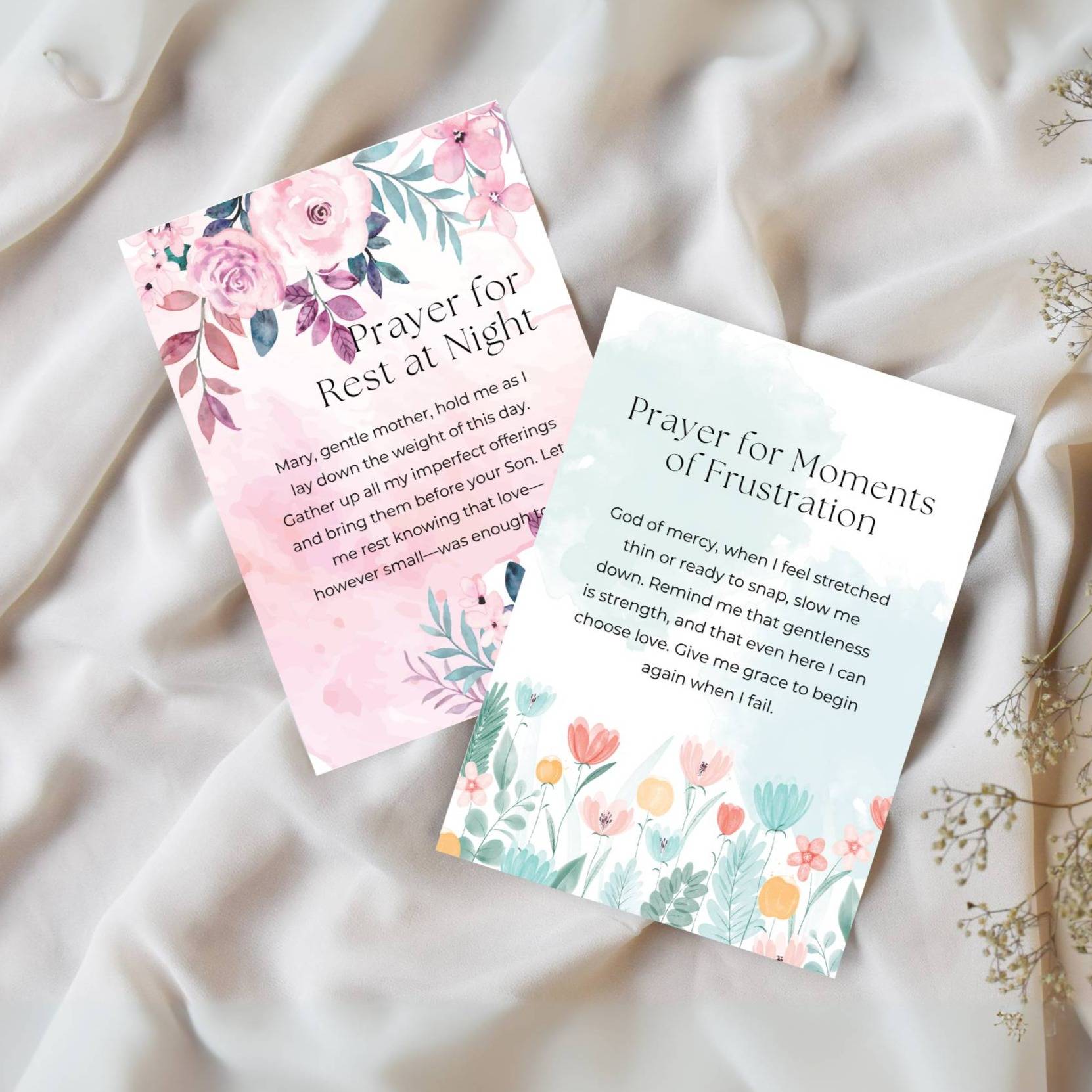 Created for mothers who want to live with faith and simplicity, these cards are a small way to bring prayer into your everyday life. Motherhood is holy, but not always easy. These prayer cards remind you that little acts of love matter deeply.